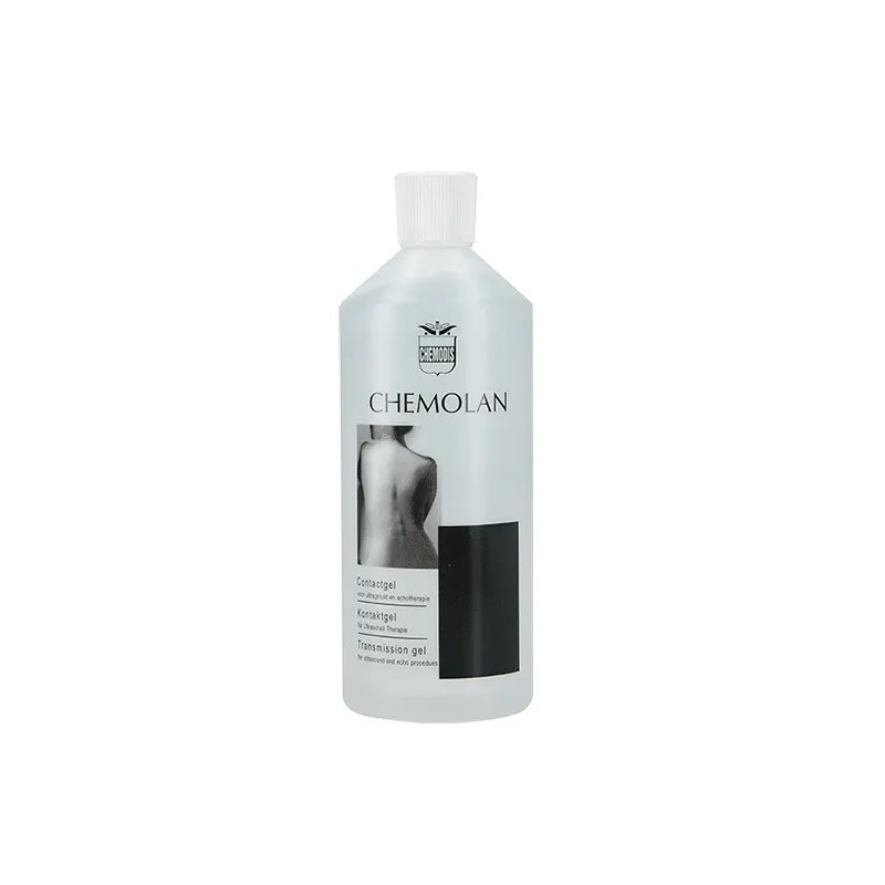 Chemolan van Chemodis is een neutrale en goed geleidende contactgel voor een ultrageluid of echotherapie behandeling. De contactgel heeft een neutrale PH- waarde en een viscositeit waardoor de gel gedurende de behandeling goed op de huid blijft.